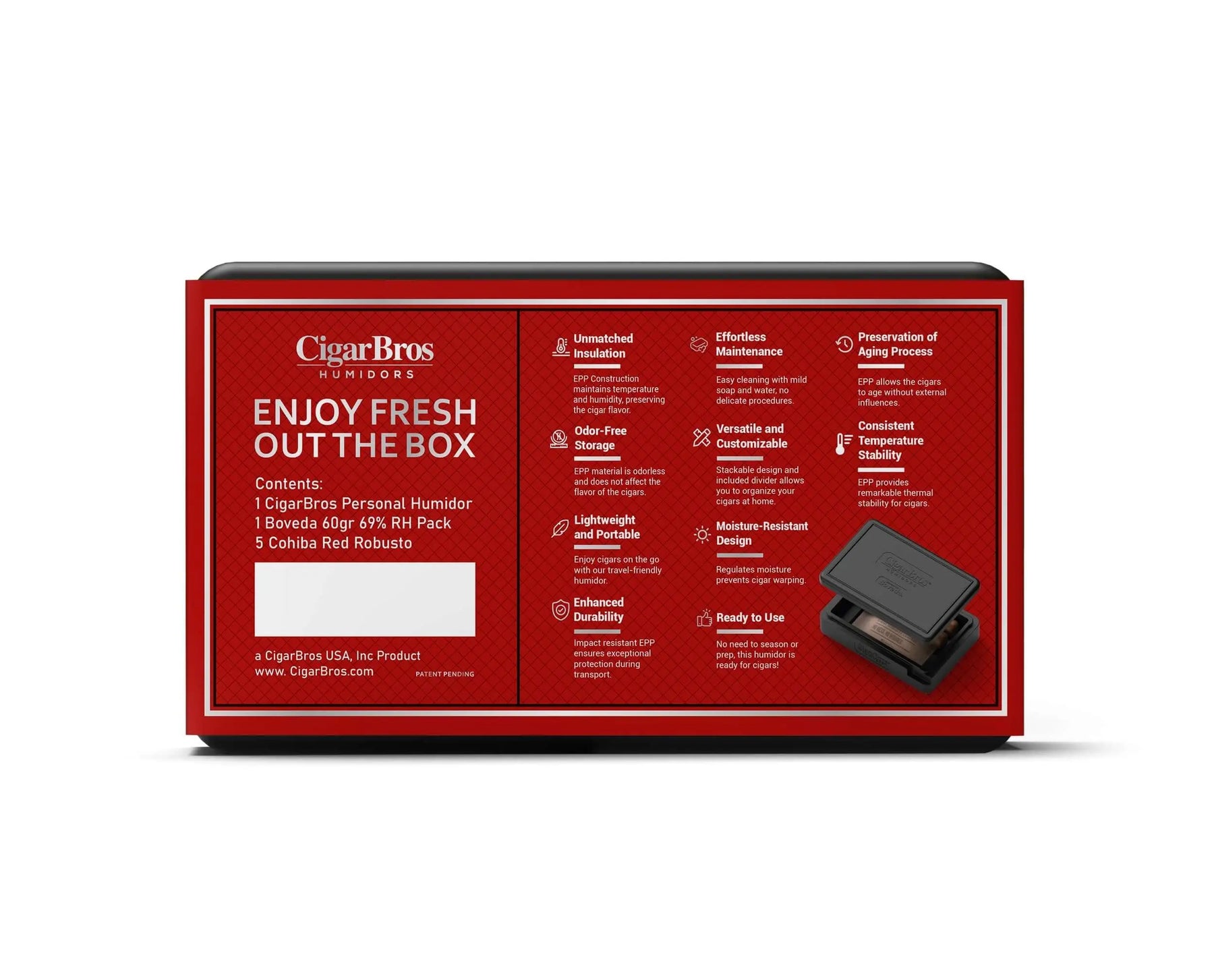 Elevate your cigar experience with this premium personal humidor - crafted for flavor, freshness, and convenience. Only from CigarBros.