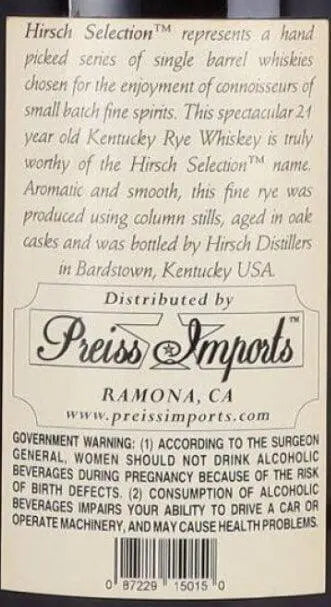 Hirsch Selection 21 Year Old Kentucky Straight Rye Whiskey