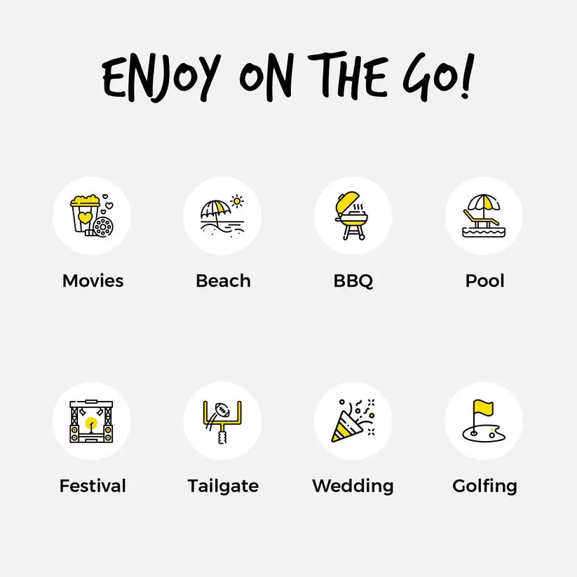 • Perfect for casual gatherings, beach days, and late-night celebrations