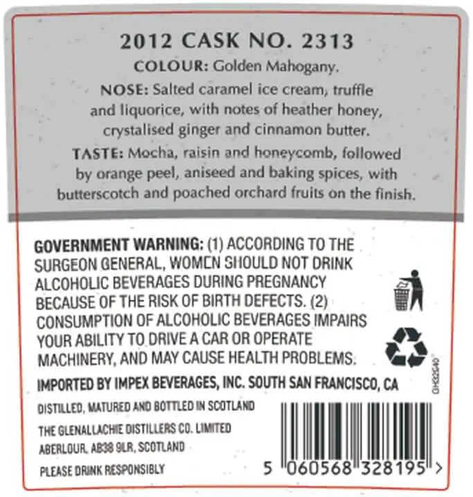 The GlenAllachie 2012 Single Cask is bottled at 62.8% ABV (cask strength).