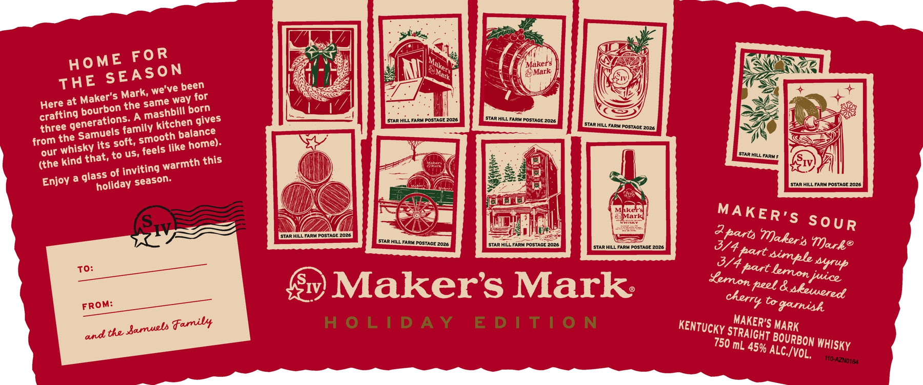 Maker’s Mark Holiday Edition is a seasonal release of the iconic Kentucky Straight Bourbon Whiskey, featuring festive packaging inspired by Star Hill Farm and the Samuel family legacy.