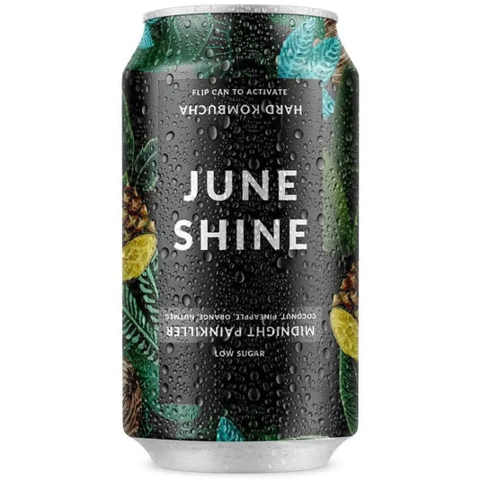 Bold and flavorful: Our dark twist on the classic painkiller tiki cocktail with pineapple, coconut, orange, activated charcoal, and nutmeg. JuneShine Midnight Painkiller Hard Kombucha is best enjoyed at a cool 40F. 6% ALC/VOL. 12 Pack/12 FL OZ Cans