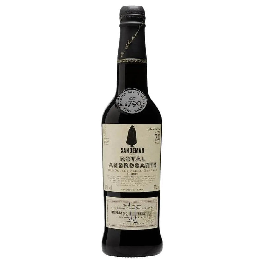 Sherry Royal Ambrosante Pedro Ximénez 20 Year Old from a Solera established in 1894 is one of Sandeman´s Rare wines. Its intense flavour combines lush, ripe fruit and age, epitomising the style of Sandeman Sherries.