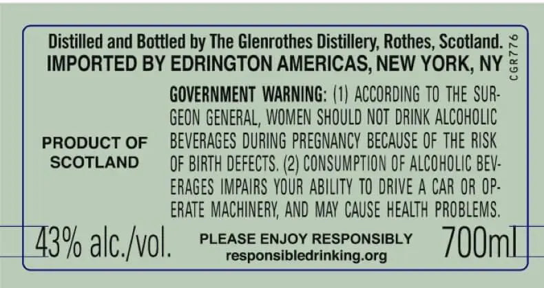 The Glenrothes 15 Year Old Speyside Single Malt Scotch Whisky